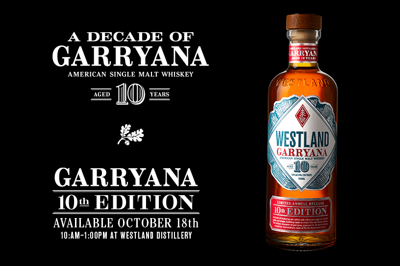 Garryana Edition 10 Release event at Westland Distillery, celebrating the 10th release of Westland's internationally awarded whiskey. The event will feature the first chance to sip G10, complimentary brunch cuisine from 9th & Hennepin Donuts, and Good Morning Taco, Live music, Garryana preservation education, wood working and barrel coopering demos, and more! The first 300 guests will enjoy exclusive G10 commemorative packaging celebrating the 10th edition whiskey, matured for 10 years.